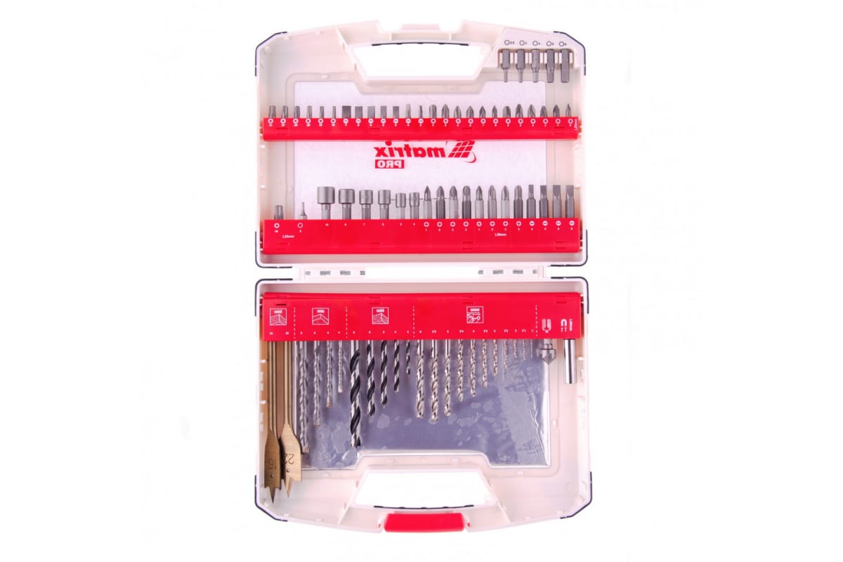 Набор сверл и бит PRO, 75 шт. MATRIX 725675 включает в себя необходимую оснастку для ремонтных работ по дому. Биты и сверла изготовлены в соответствии со стандартами качества.