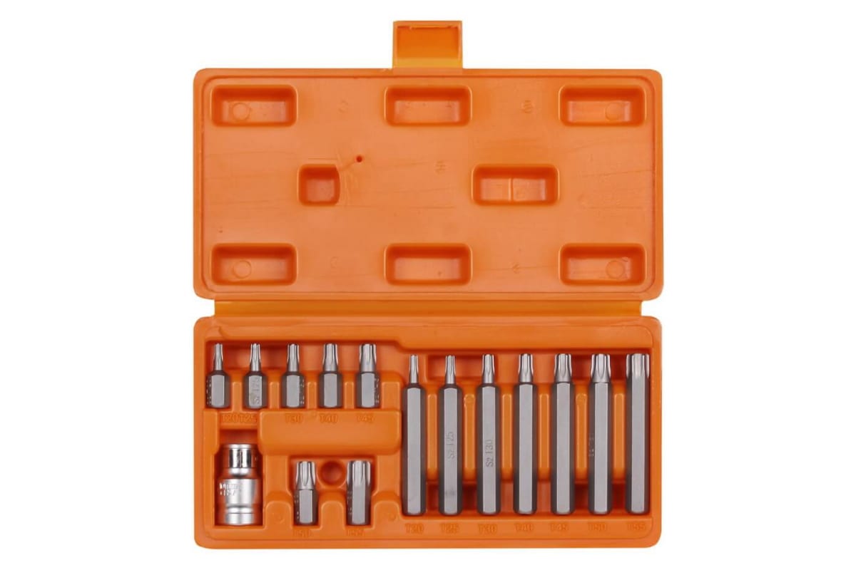 —Набор бит вставок TORX (3/8", 30 мм и 75 мм, адаптер для бит 1/2" DR, 15 шт., в кейсе) Airline AT-B-21—
