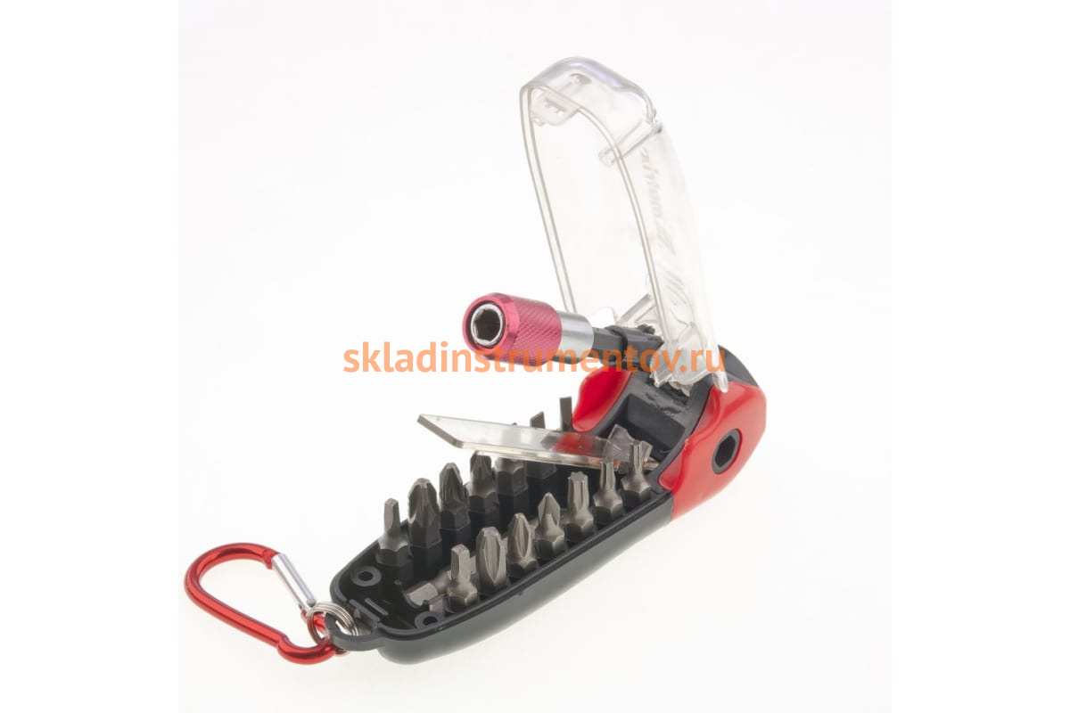Многофункциональный набор бит MATRIX 11383 применяется для монтажа/демонтажа крепежных элементов с помощью шуруповерта или универсальной отвертки под биты. Магнитный адаптер обеспечивает надежное крепление оснастки в посадочном гнезде. Набор поставляется в удобном для хранения и транспортировки пластиковом карабине, который может служить рукояткой при работе с крепежом.