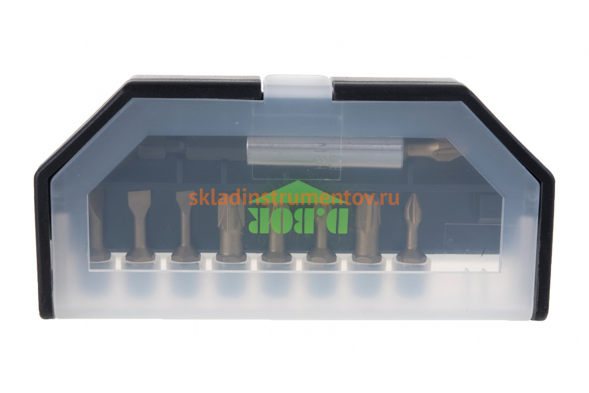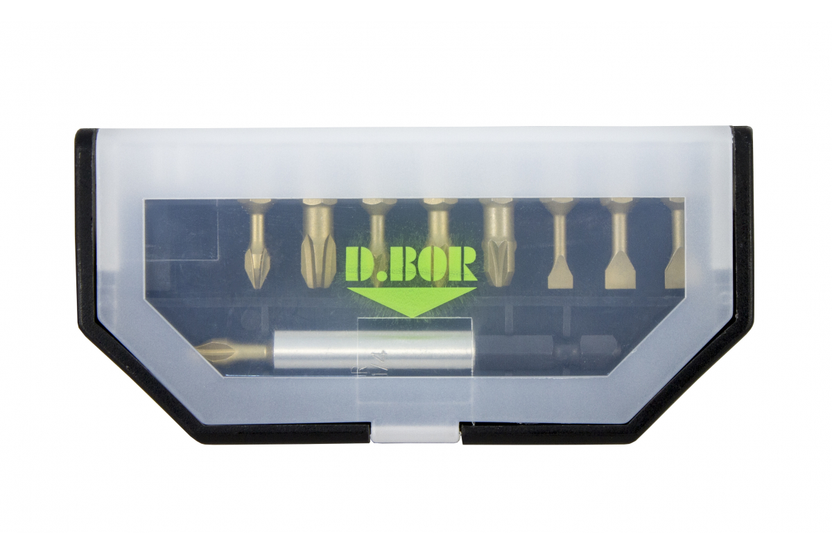 Набор бит TiN-half 10 шт D.BOR D-SET-10A-1-TIN используется при монтаже/демонтаже различного крепежа: шурупов, саморезов, винтов, болтов. В комплекте есть магнитный держатель. Набор поставляется в пластиковом кейсе.