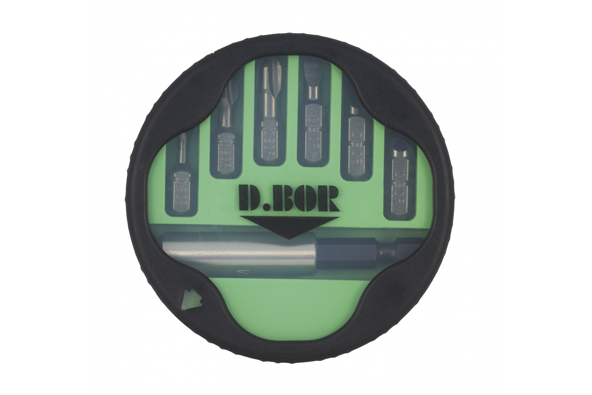 Набор бит из D.BOR D-SET-07B-1 используется при монтаже/демонтаже различного крепежа: шурупов, саморезов, винтов, болтов. В комплекте есть магнитный держатель. Биты изготовлены из высококачественной инструментальной стали S2, твердость 58–62 HRC. Набор поставляется в пластиковом кейсе.
