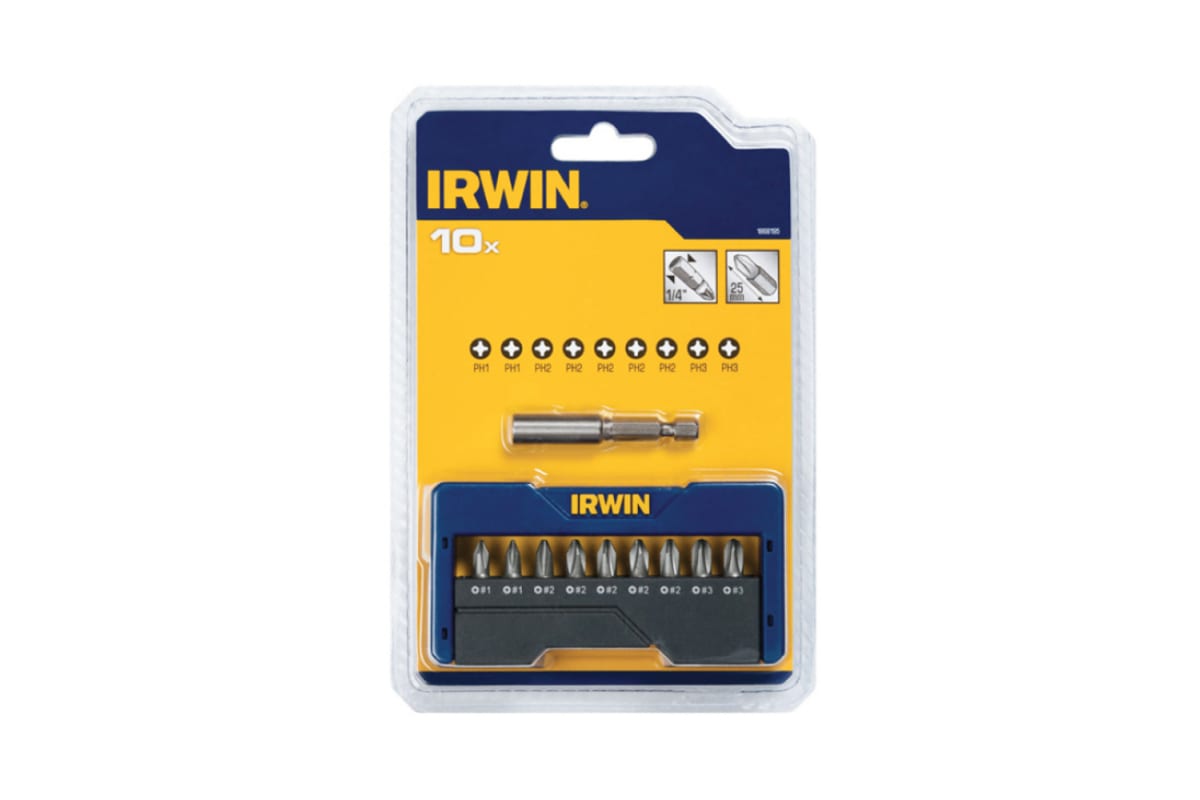 Набор вставок Irwin 1868196 применяется совместно с ручными отвертками и шуруповертами с использованием магнитного держателя. Вставки поставляются в прочном и удобном кейсе из пластика. В комплекте 9 бит и магнитный держатель.