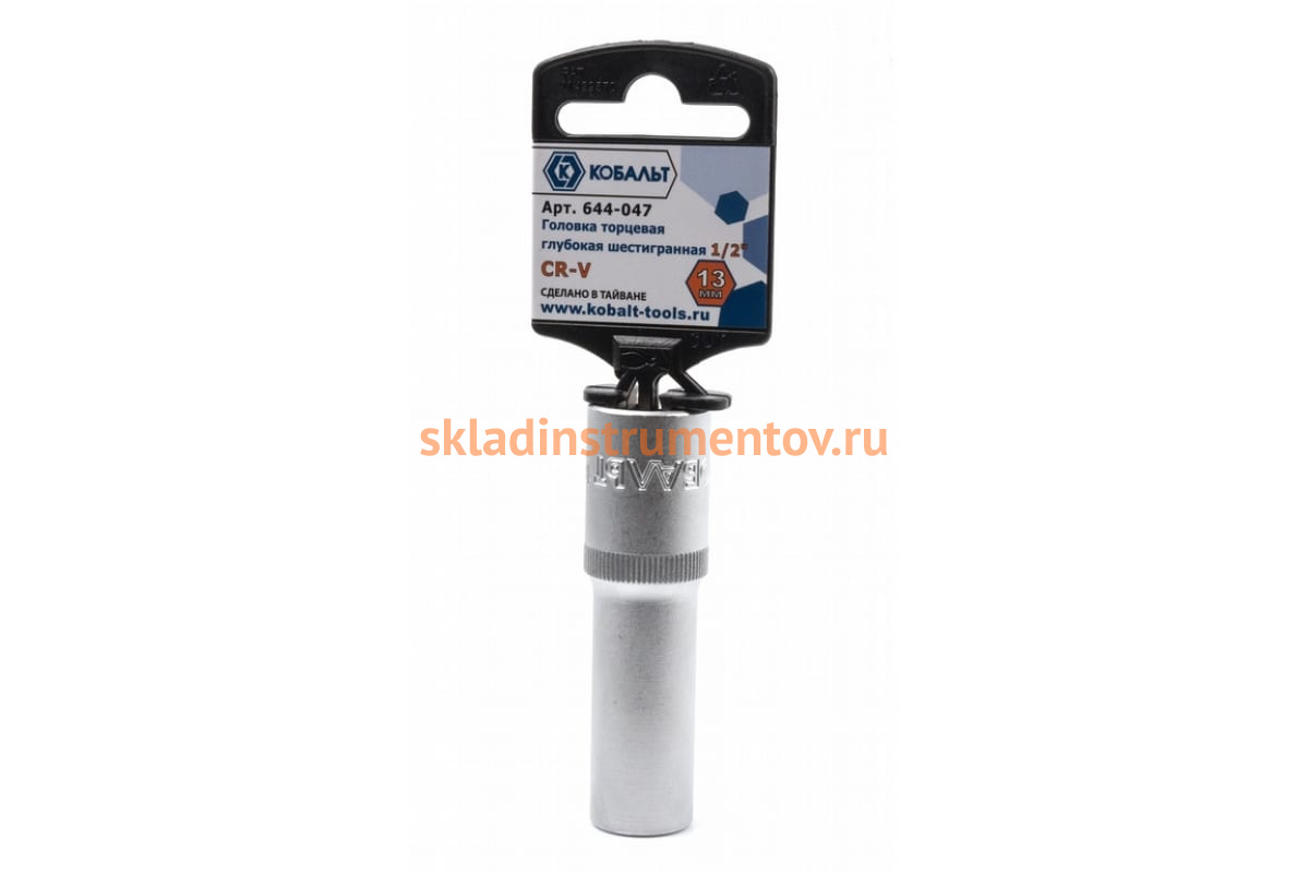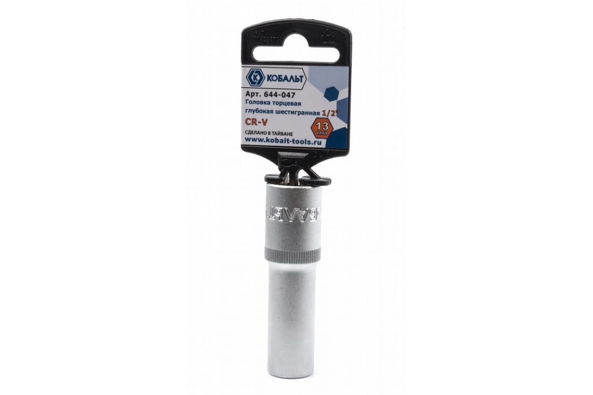 Глубокая торцевая головка КОБАЛЬТ 1/2, 13мм, Cr-V 644-047