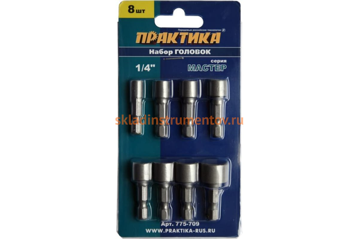 Набор головок серия Мастер (8шт; 5,6,7,8,9,10,11,13 мм) ПРАКТИКА 775-709