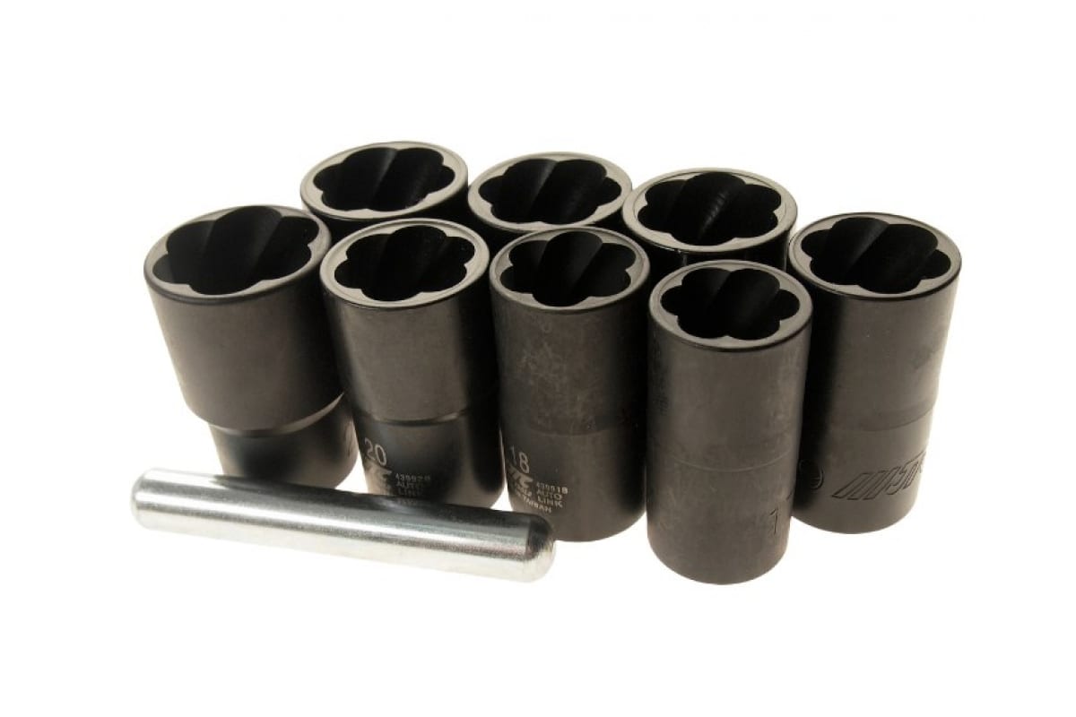 Набор головок для поврежденных болтов 9шт JTC 4399S применяется в автомобильных мастерских и в сервисных центрах различного назначения. Входящие в комплект изделия обладают специальной конструкцией спирального типа, что обеспечивает быстрый демонтаж требуемых деталей. Подходит для снятия потайных креплений (гаек и болтов). Длина приспособлений - 50 мм.