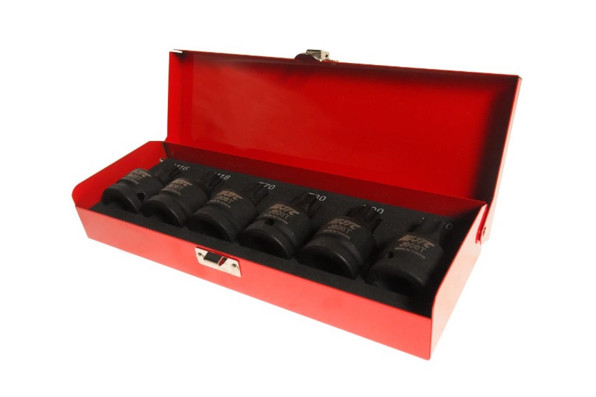 Набор ударных головок HEX 3/4 T70-M18 6шт JTC J606T используется для демонтажа туго посаженных креплений, применяемых в конструкции автомобилей, промышленного и строительного оборудования. Длина изделий - 61 мм.