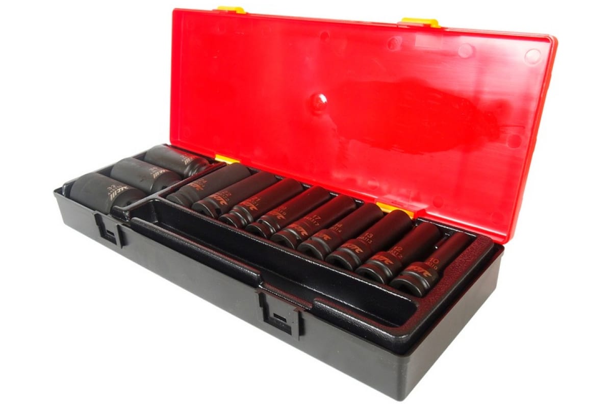 Набор ударных глубоких двенадцатигранных торцевых головок 1/2" 10-32мм в кейсе 12шт JTC-K4122