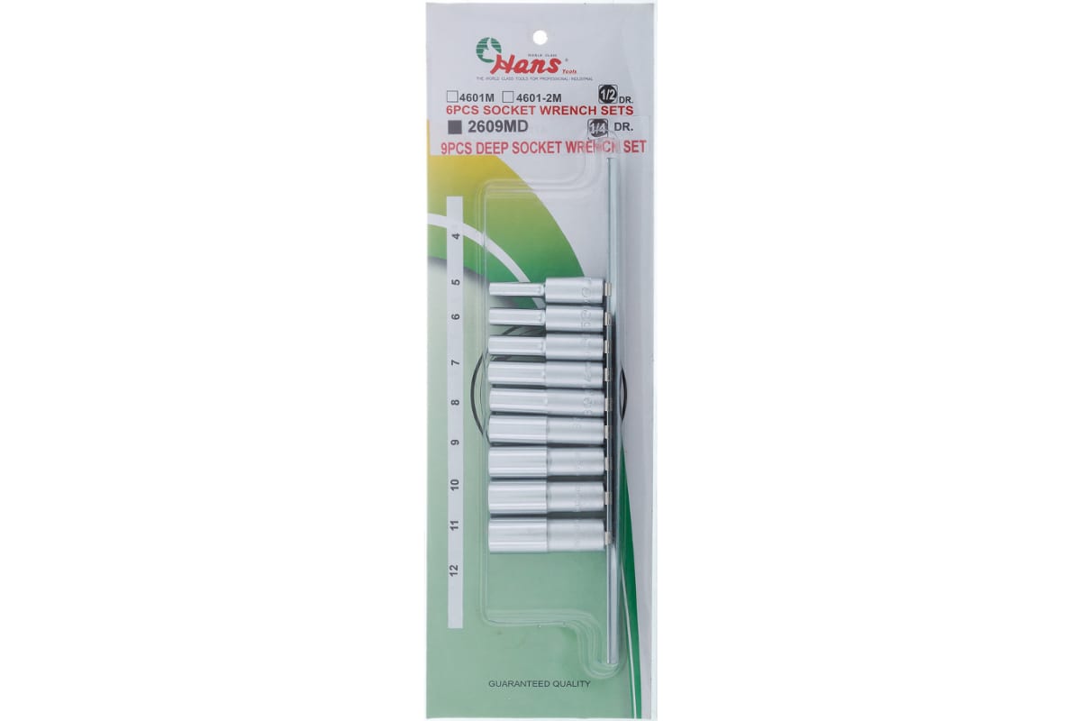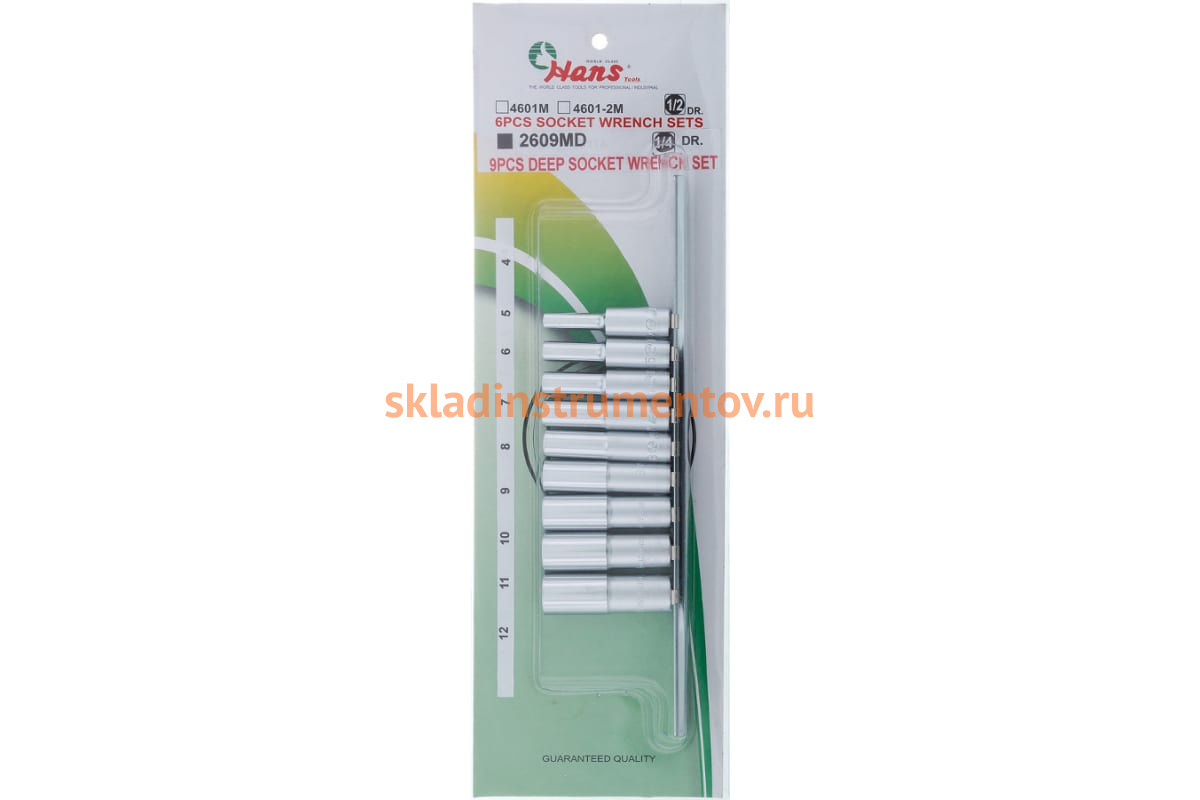 Компект 6-ти гранных торцевых головок Hans 2609MD применяется для монтажа/демонтажа крепежных элементов с помощью ручного инструмента или гайковерта в труднодоступных местах.