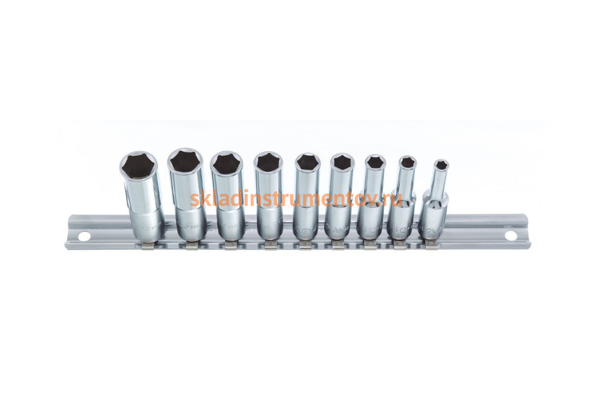 Набор состоит из 9 торцевых головок: 4, 5, 6, 7, 8, 9, 10, 11, 12 мм.