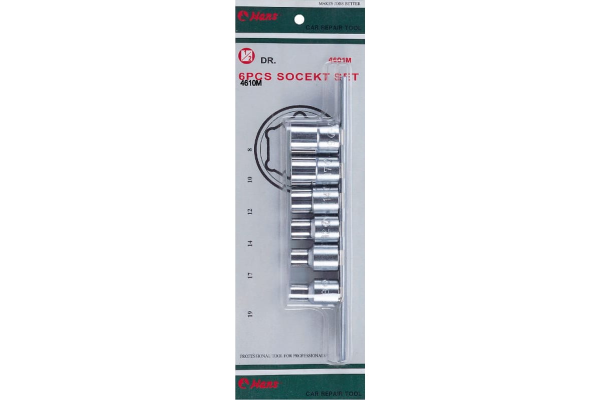 Комплект 6-ти гранных торцевых головок Hans 4601M применяется для монтажа/демонтажа крепежных элементов с помощью ручного инструмента или гайковерта.