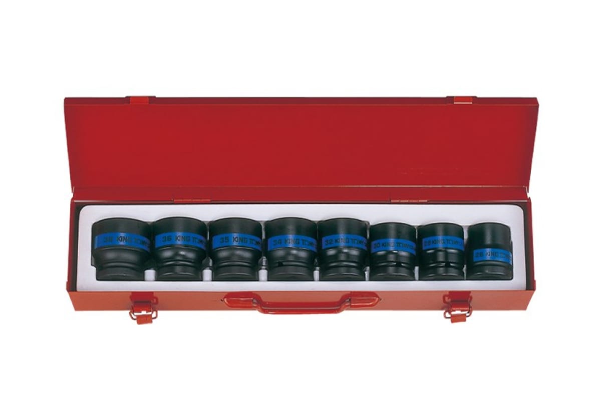Набор ударных торцевых головок (3/4", шестигранные, 21-41 мм, 8 предметов) KING TONY 6409MP03 представляет собой оснастку для ударного пневмогайковерта. Фосфатированное покрытие защищает головки от образования коррозии. Приспособления выполнены из стойкого к деформации хром-молибденового сплава.