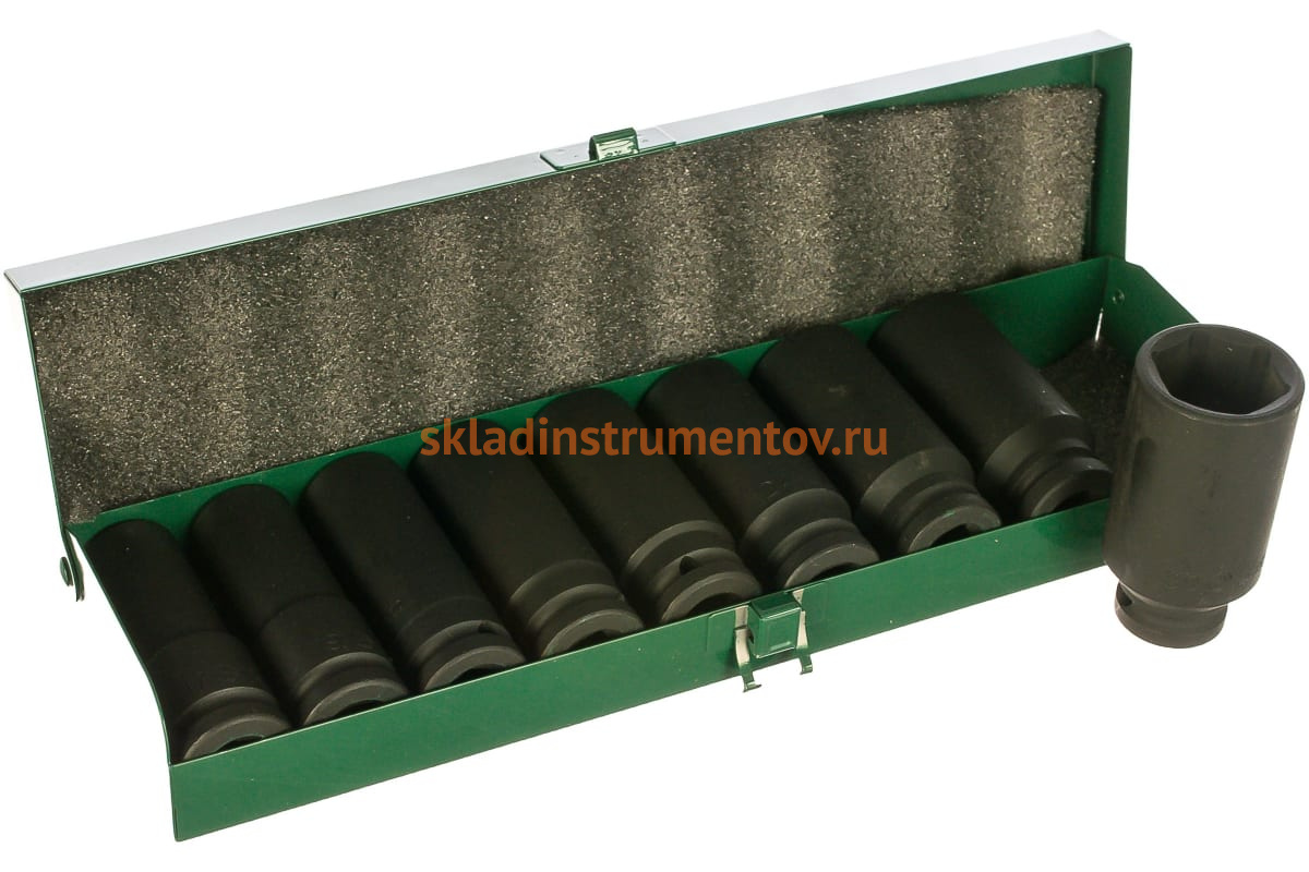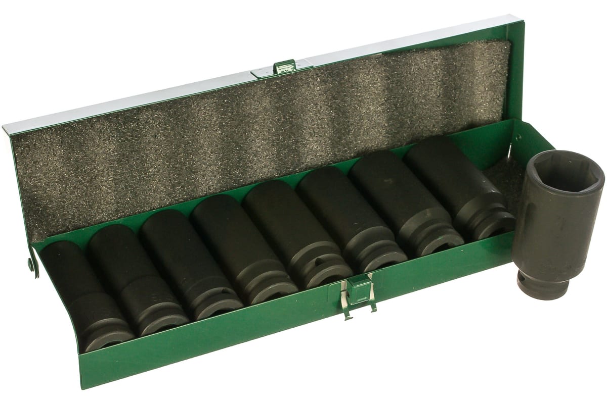 Набор состоит из 9 торцевых головок: 17, 19, 21, 22, 23, 24, 26, 27, 30 мм.