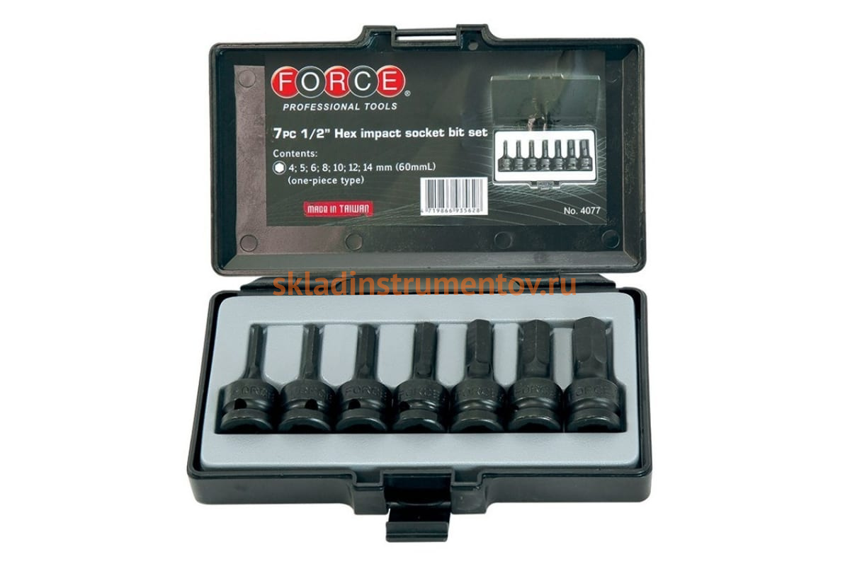 —Набор головок 1/2" HEX для пневмоинструмента, 7 шт. FORCE 4077—