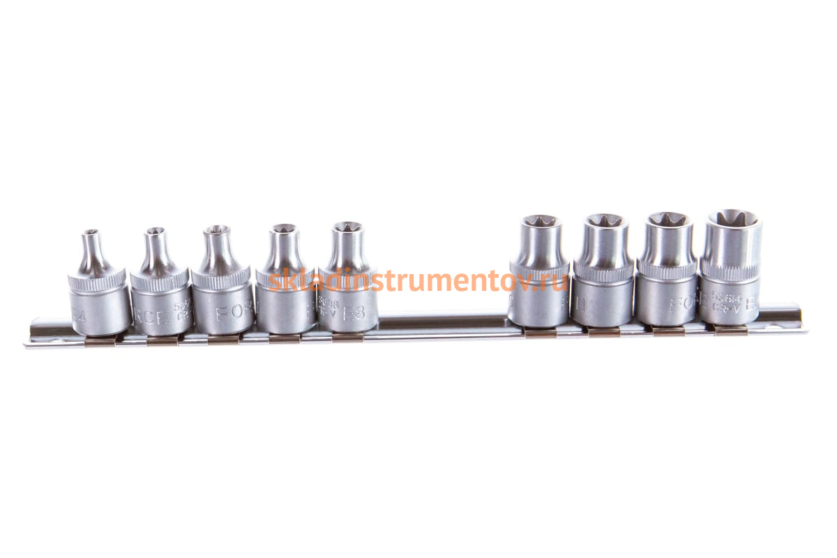 Набор головок 3/8" Е4-Е14, 9 шт. FORCE 3091