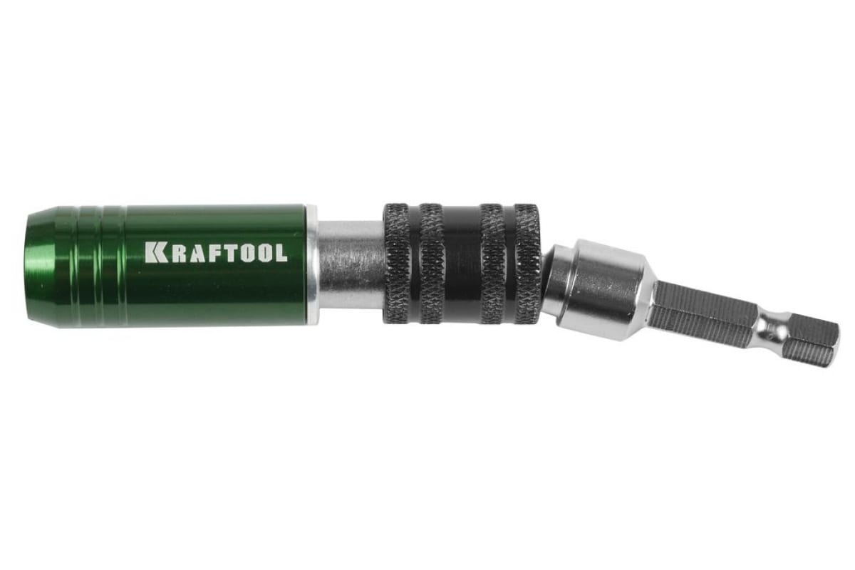 Шарнирный адаптер для бит с магнитным держателем крепежа KRAFTOOL 26761-100 применяется совместно с ручным или механизированным инструментом. Крепеж фиксируется с помощью магнита, что дает возможность работать одной рукой. Шариковый держатель обеспечивает быстрое и надежное крепление биты. Шарнирный механизм позволяет легко и качественно обслуживать соединения в труднодоступных местах. Адаптер соответствует высоким требованиям и предназначен для профессионального использования. Длина - 100 мм.