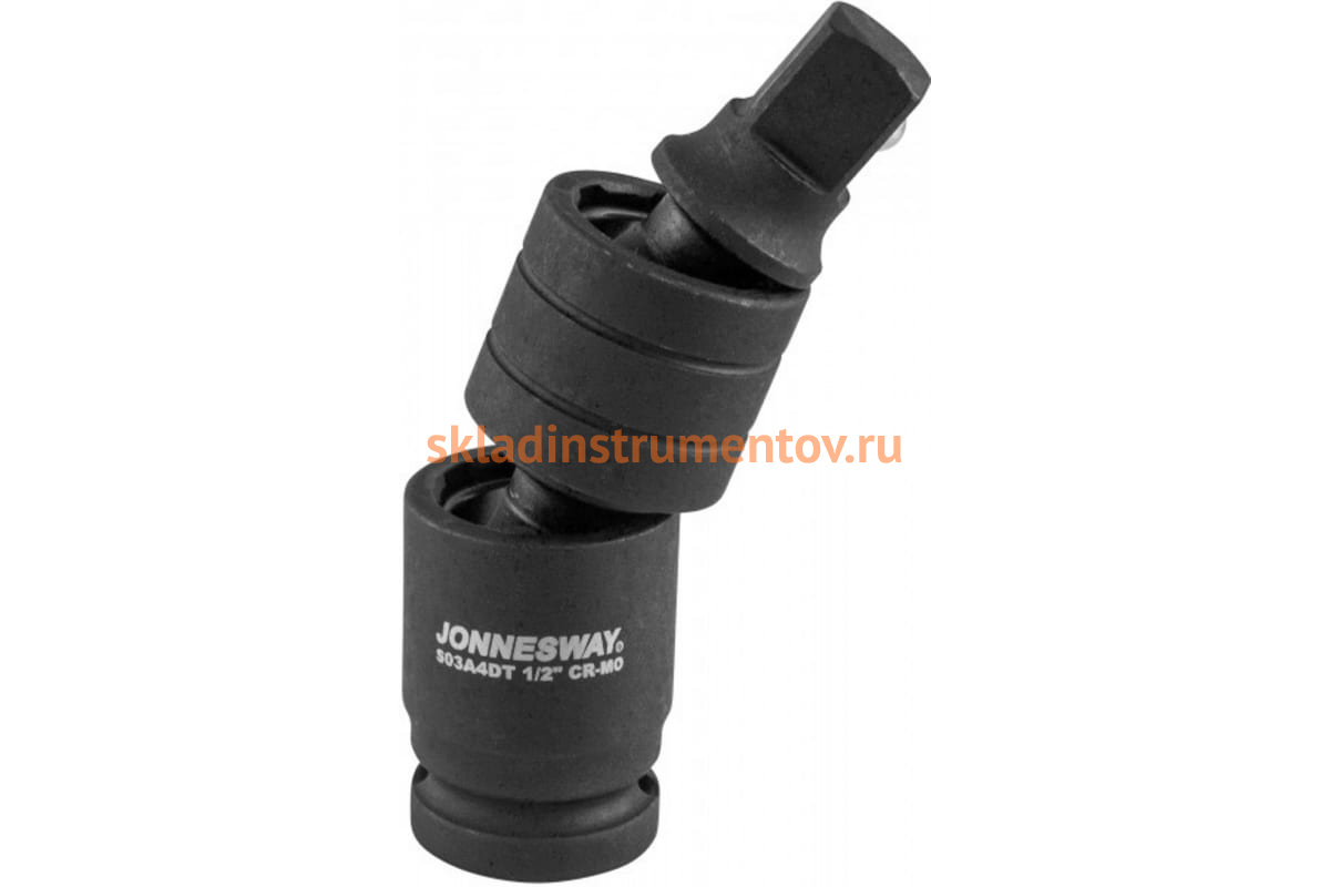 Шарнир карданный ударный трехсекционный 1/2DR Jonnesway S03A4DT 46312 в отличие от стандартного карданного шарнира имеет два шарнира, у каждого из которых угол отклонения от центральной оси до 23 градусов. Максимальное значение крутящего момента превышает более чем в 2 раза величину по стандарту DIN3123. Используется с применением ударного механизированного инструмента.