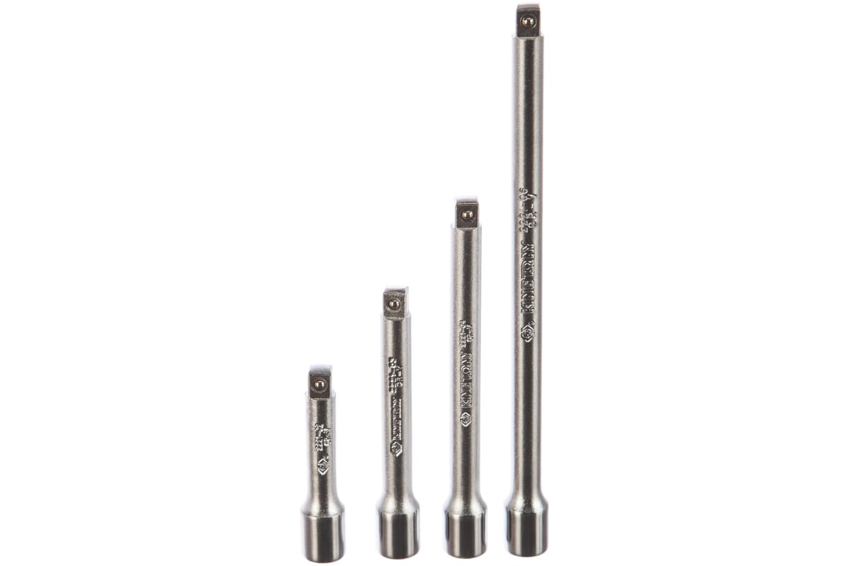 Набор удлинителей (1/4", 55, 75, 100, 150 мм, 4 предмета) KING TONY 2104PR позволяет устанавливать крепеж в углублениях конструкции. Вес набора составляет 0.17 кг. В комплект входят модели длиной 55, 75, 100 и 150 мм.