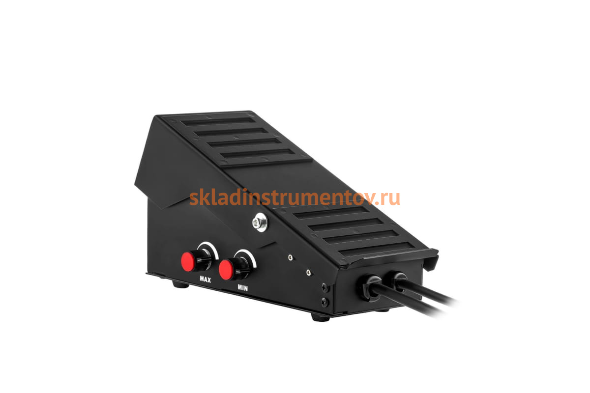Значение сварочного тока зависит от силы воздействия на педаль, чем сильнее нажатие, тем больший ток выдает источник.