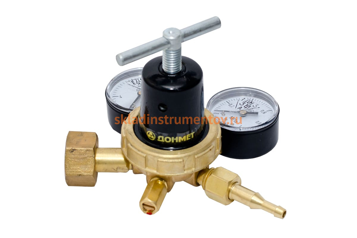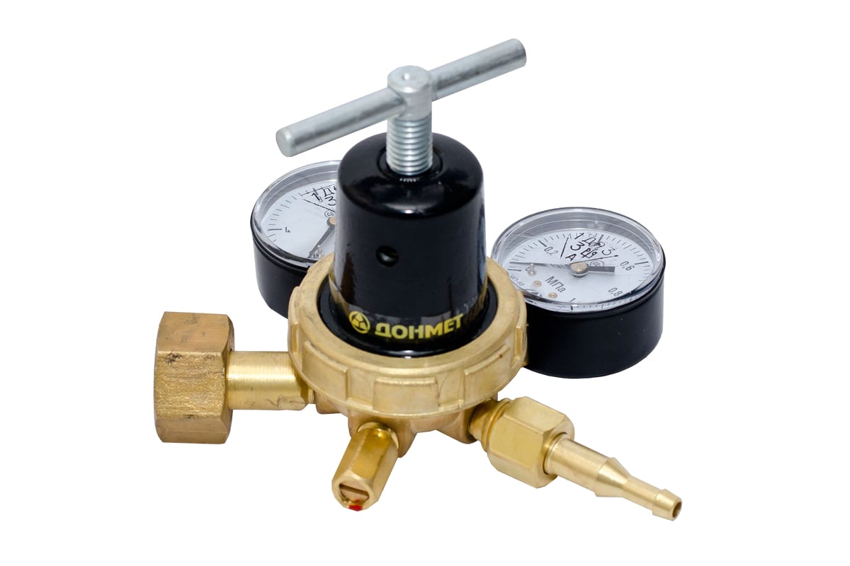Регулятор АР-40-4ДМ Донмет СВ000007233 предназначен для регулирования, поддержания и формирования необходимого давления, поступающего из баллона. Наличие двух манометров обеспечивает контроль давления на входе и в камере рабочего давления. Подсоединяется к газовому баллону и рукаву для последующей подачи газа. Рабочий газ — аргон.