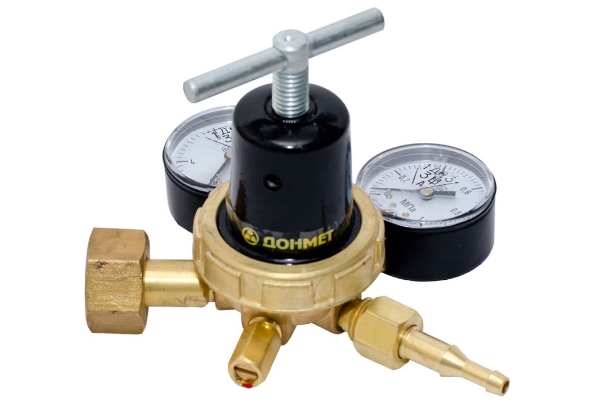 Регулятор УР-6-4ДМ Донмет СВ000007231 предназначен для регулирования, поддержания и формирования необходимого давления, поступающего из баллона. Наличие двух манометров обеспечивает контроль давления на входе и в камере рабочего давления. Подсоединяется к газовому баллону и рукаву для последующей подачи газа.