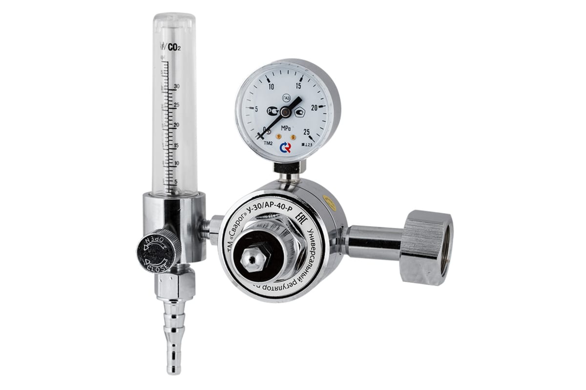 Регулятор универсальный У-30/АР-40-Р Сварог 94146 предназначен для понижения давления газа, поступающего из баллона, и автоматического поддержания постоянного расхода газа на выходе. Оснастка комплектуется одним манометром и ротаметром.