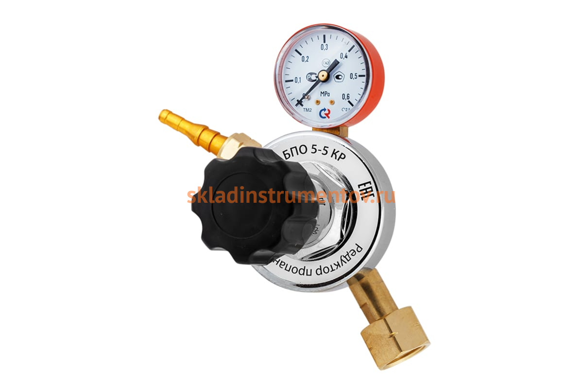 Редуктор пропановый БПО 5-5 КР Сварог 94144 предназначен для понижения и регулировки давления газа, поступающего из баллона, и автоматического поддержания на необходимом уровне рабочего давления газа.