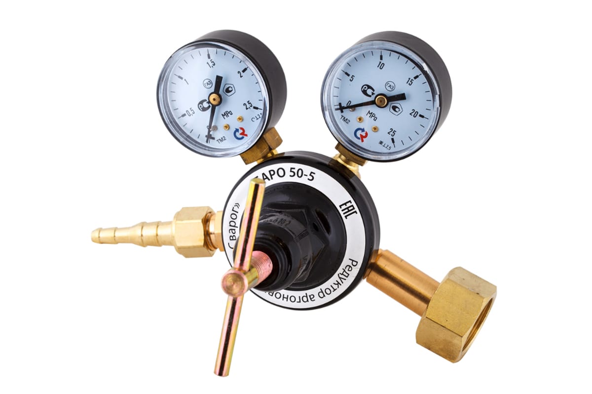 Редуктор газовый БАРО 50-5 R M62/825 Сварог 94451 предназначен для регулирования, поддержания и формирования необходимого давления, поступающего из баллона. Два манометра обеспечивают контроль давления на входе и в камере рабочего давления. Подсоединяется к газовому баллону и рукаву для последующей подачи газа.