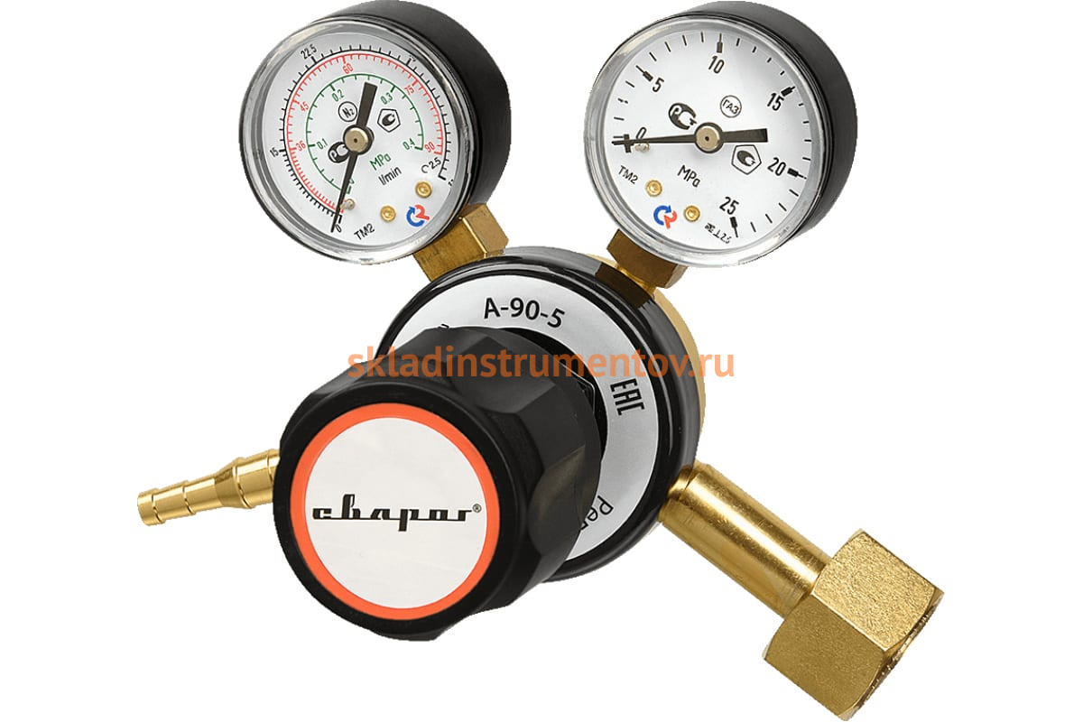 Регулятор азотный А-90-5 Сварог 1C008-0028-N2-FL95627 предназначен для понижения давления газа, поступающего из баллона, и автоматического поддержания постоянного расхода газа на выходе. Оснастка комплектуется одним манометром и указателем расхода газа.