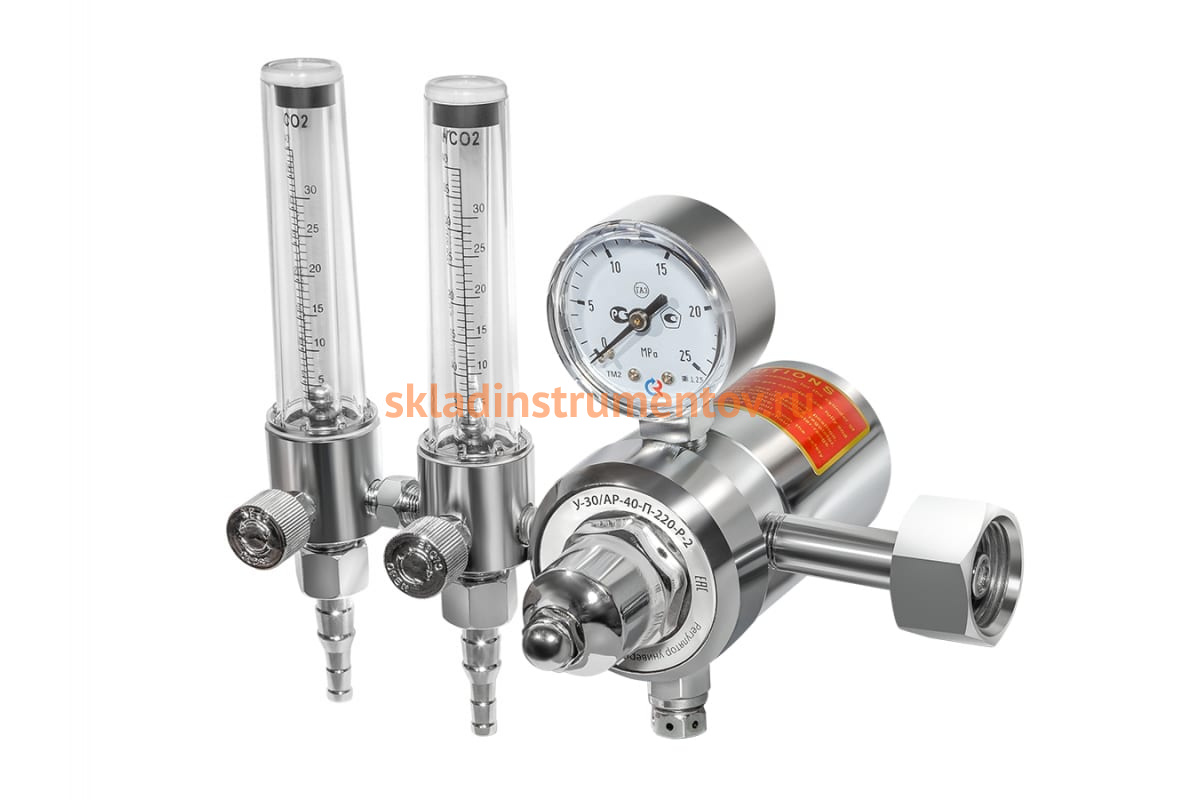 Регулятор расхода газа универсальный У-30/АР-40-П-220-Р-2 M61 AR/CO2 II Сварог 94742 предназначен для понижения и регулирования давления газа, поступающего в регулятор из баллона, и автоматического поддержания расхода газа на постоянном уровне. Оснащен двумя ротаметрами для определения объёмного расхода газа.