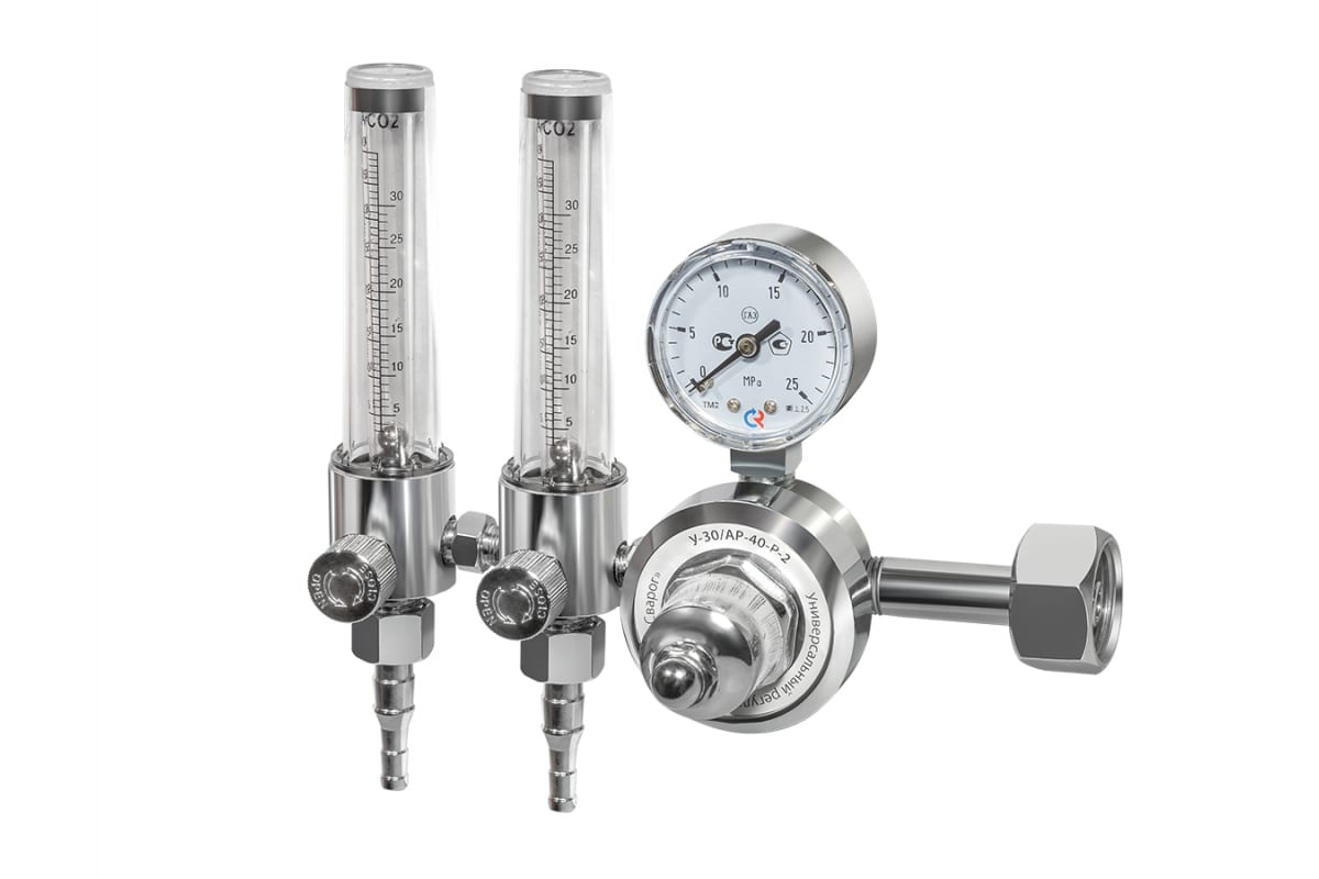 Регулятор расхода газа универсальный У-30/АР-40-Р-2 Сварог 1C008-0105-AR/CO295644 предназначен для понижения и регулирования давления газа, поступающего в регулятор из баллона, и автоматического поддержания расхода газа на постоянном уровне. Оснащен двумя ротаметрами для определения объёмного расхода газа.