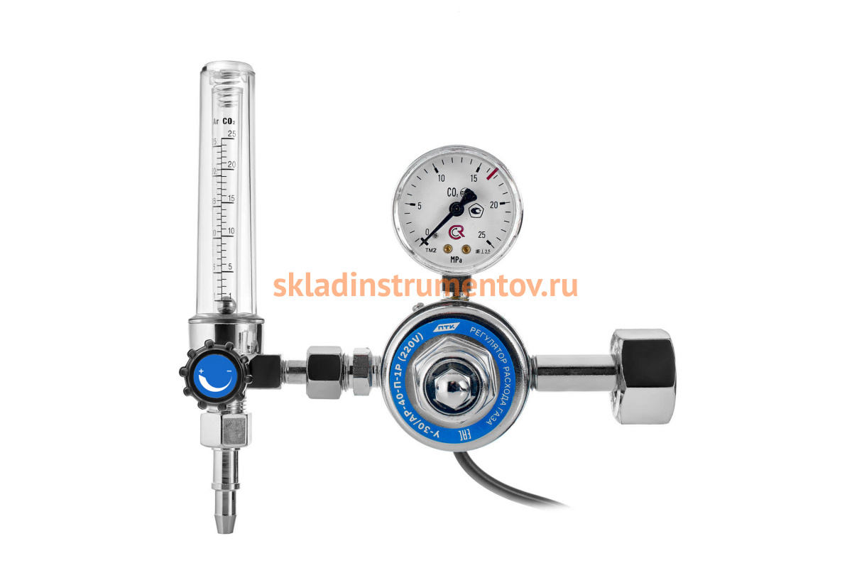 Регулятор расхода газа У-30/АР-40-П-1Р 220 В ПТК 00000029049 предназначен для понижения и регулирования давления аргона или углекислого газа, поступающих из баллона, и автоматического поддерживания постоянного рабочего расхода газа на выходе. Корпус регулятора изготовлен из латуни, корпус ротаметра изготовлен из силумина - сплава алюминия с кремнием.