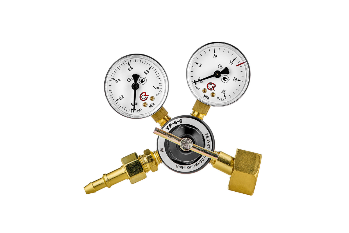 Редуктор углекислотный УР-6-6 ПТК 00000030290 предназначен для понижения давления газа. Автоматически поддерживает заданное рабочее давление.