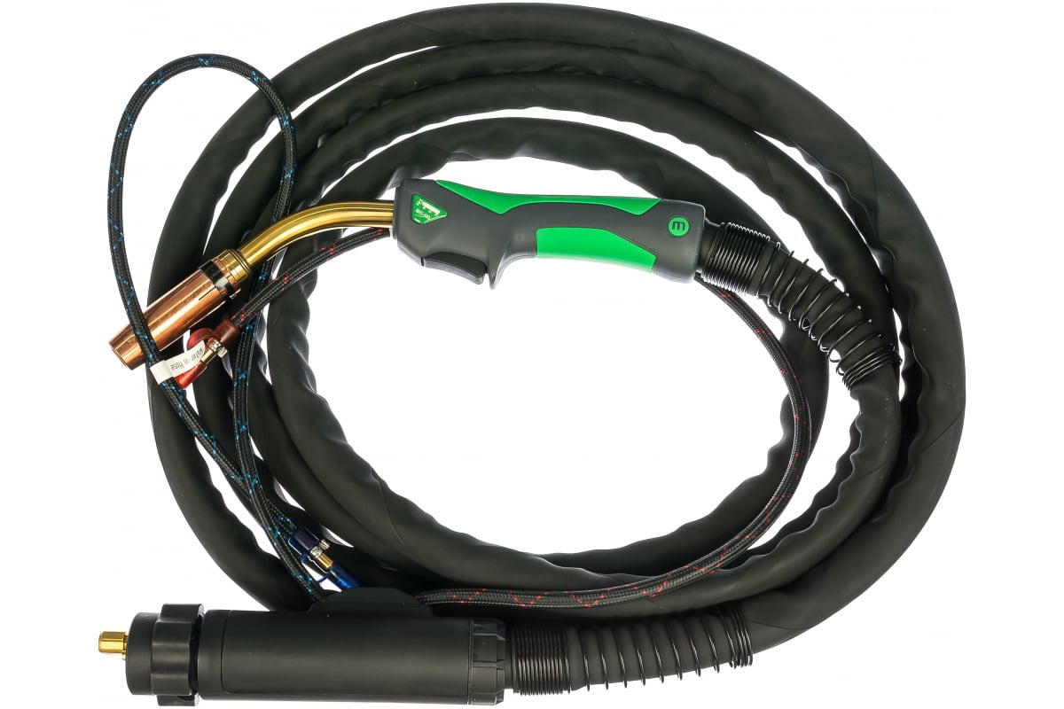 Горелка Кедр 7150019 предназначена для полуавтоматической сварки электродной проволокой в среде защитного газа. Конструкция горелки предусматривает кнопочное управление и водяное охлаждение. Соединяется с легким и гибким шланговым пакетом с помощью шарнира, что обеспечивает максимальный комфорт и позволяет проводить сварочные работы продолжительное время без усталости.