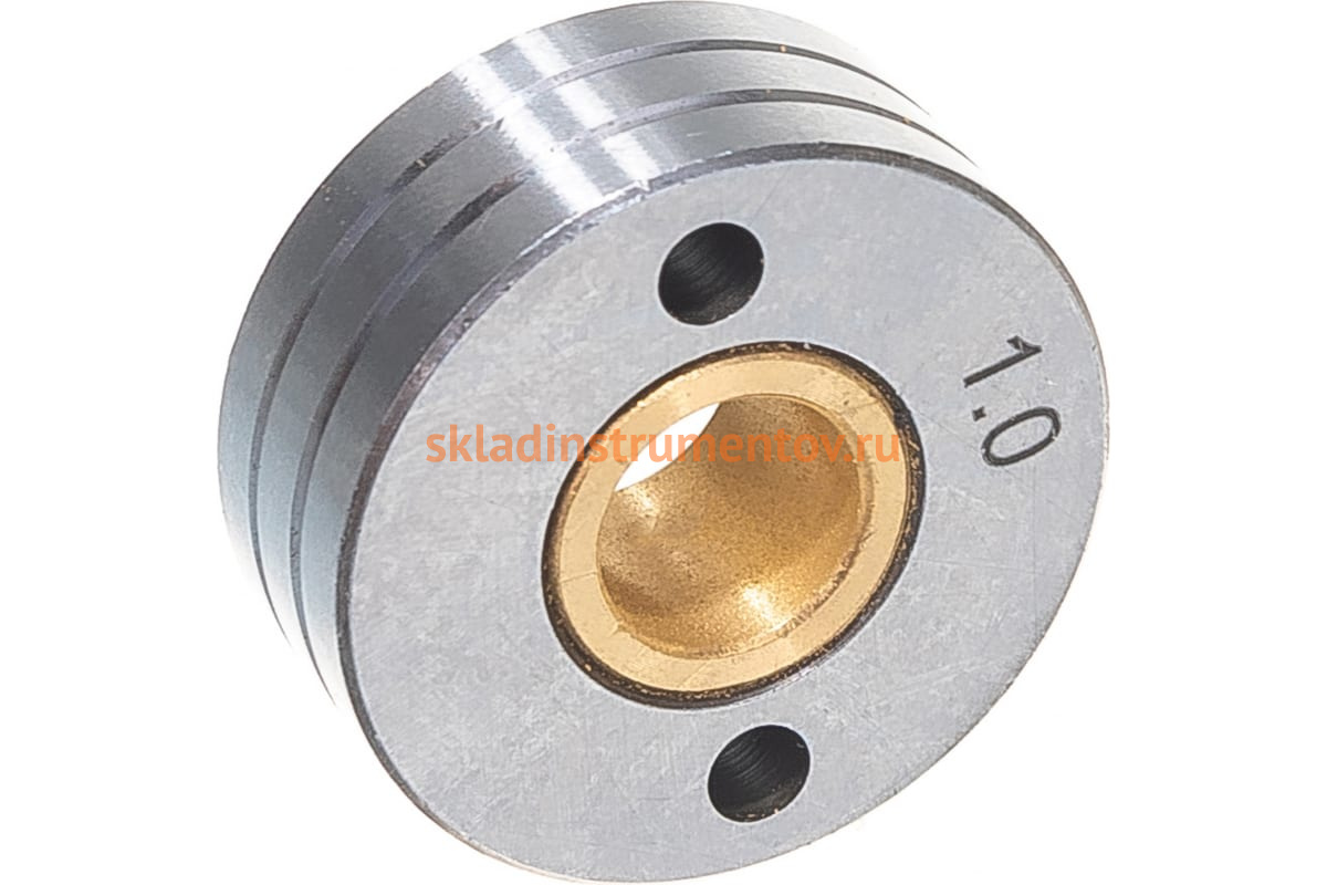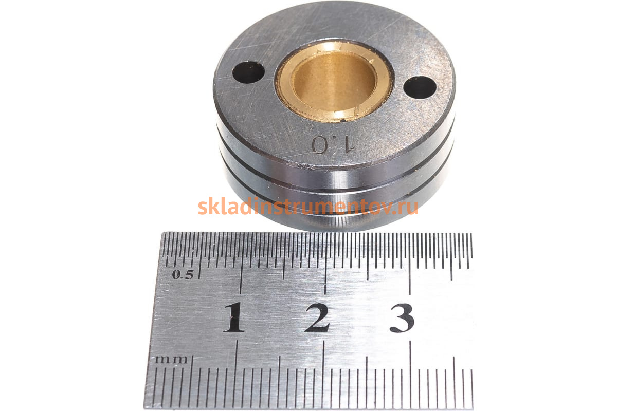 Оснащен канавками, которые обеспечивают плотный контакт с проволокой, в результате чего она не проскальзывает и не заламывается. Используется для работы со стальной проволокой диаметром 0.8–1.0 мм.