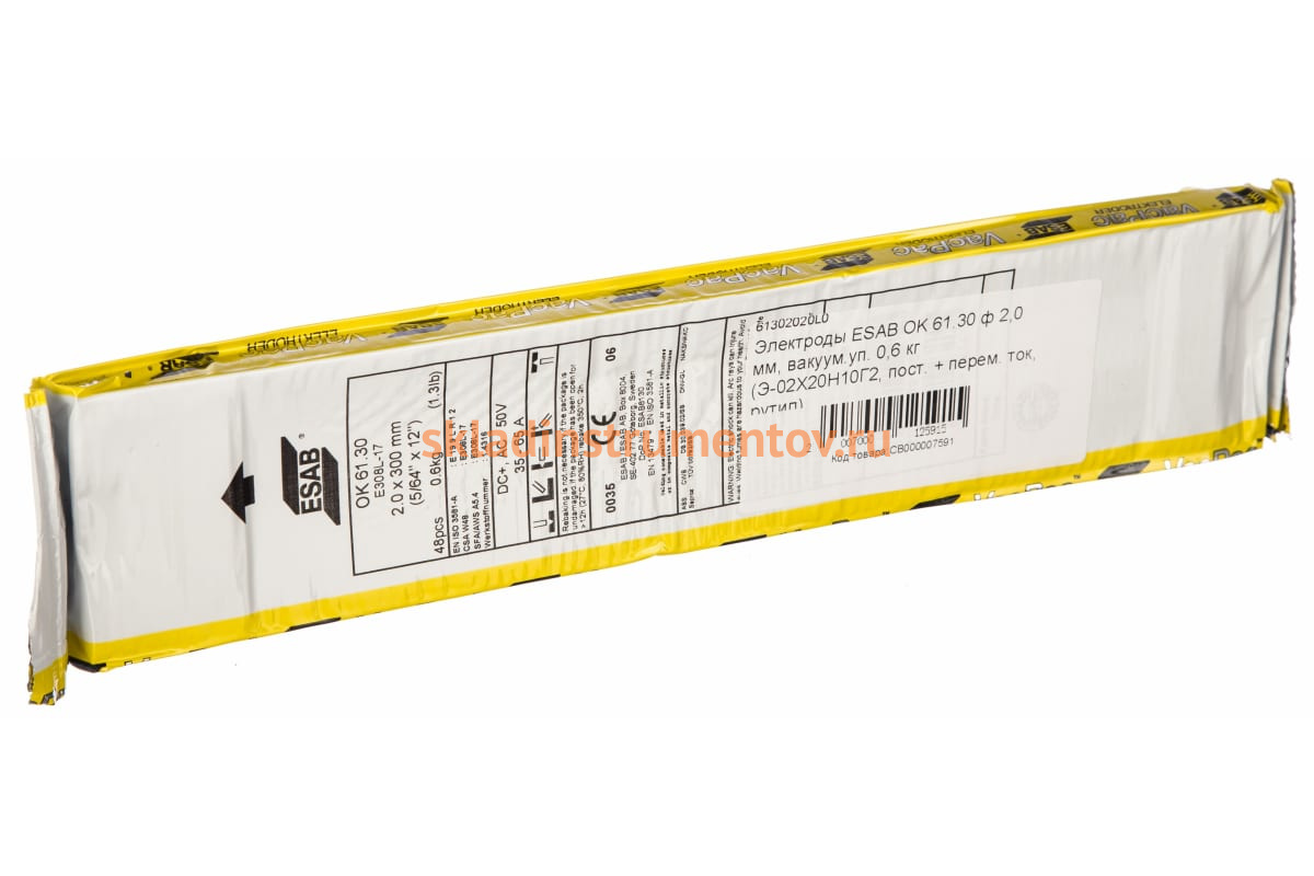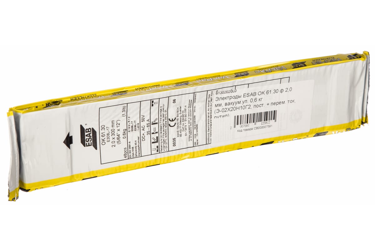 Электрод ОК 61.30 ESAB СВ000007591 предназначен для сварки методом MMA нержавеющих сталей. Сварка ведется во всех пространственных положениях. Работы следует проводить на постоянном и переменном токе. Наплавленный металл образует ровный и высококачественный шов.