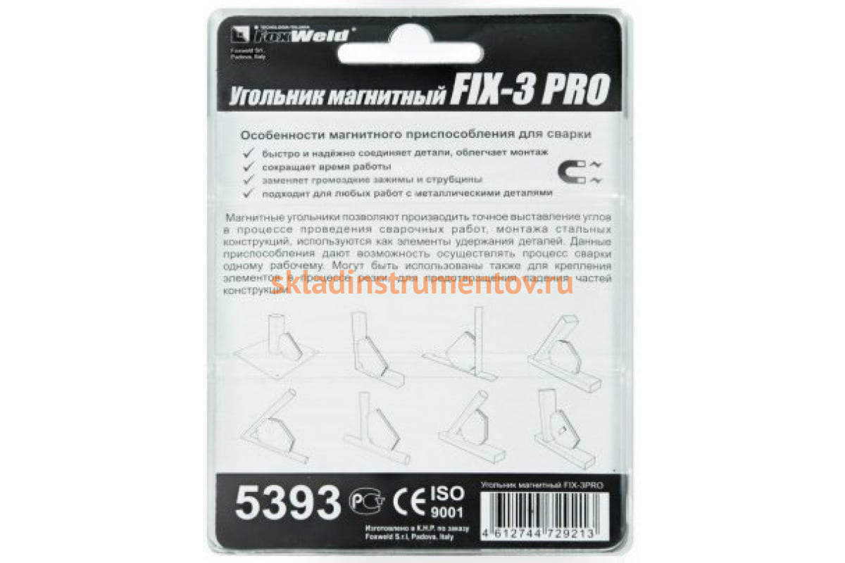 Магнитный угольник Foxweld FIX-3Pro до 11кг 5393 обеспечивает установку и фиксацию металлических деталей под заданными углами при монтаже, резке и сварке конструкций. Облегчает работу тем, что выставление и удержание элементов производится перед началом работ. Позволяет задавать углы 30, 45, 60, 75, 90° и удерживать вес до 11 кг.