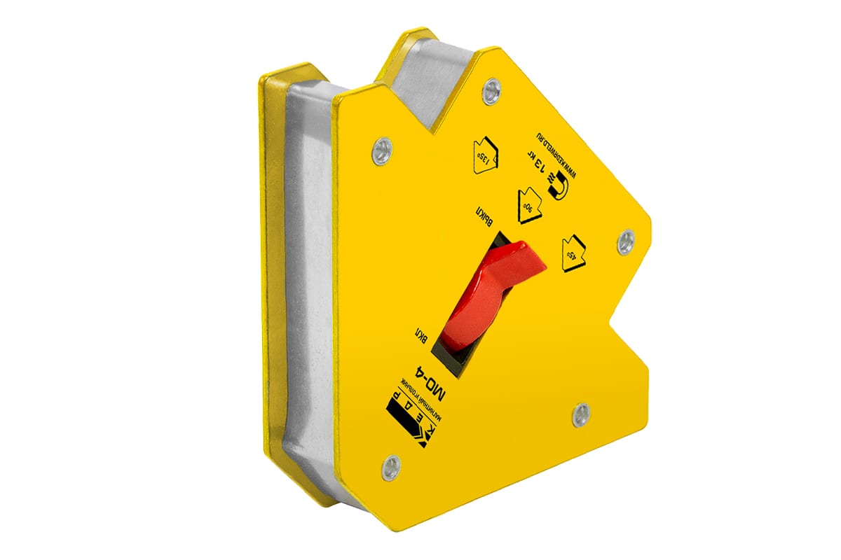 Магнитный угольник МО-4 Кедр 8005176 предназначен для фиксации металлических деталей при сварке, пайке, сборке конструкций. Применяется для работы с круглыми трубами, прямоугольными трубами, полосами, уголками, профилями, листовым, сплошным и другими видами металла. Угольник быстро и надёжно соединяет детали, сокращает время работы, облегчает монтаж и заменяет громоздкие зажимы и струбцины. Углы: 45°, 90°, 135°. Максимальное усилие — 13 кг.