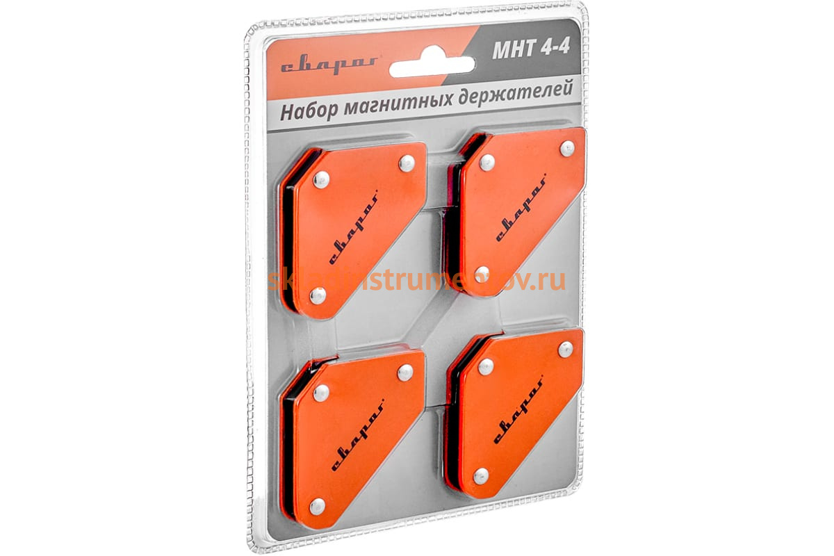 Набор магнитных держателей 4 шт МНТ 4/4 QJ6010 Сварог 95916 предназначен для фиксации металлических деталей при сварке, пайке, сборке конструкций. Применяется для работы с круглыми трубами, прямоугольными трубами, полосами, уголками, профилями, листовым, сплошным и другими видами металла. В наборе четыре угольника. Угольники быстро и надёжно соединяют детали, сокращают время работы, облегчают монтаж и заменяют громоздкие зажимы и струбцины.