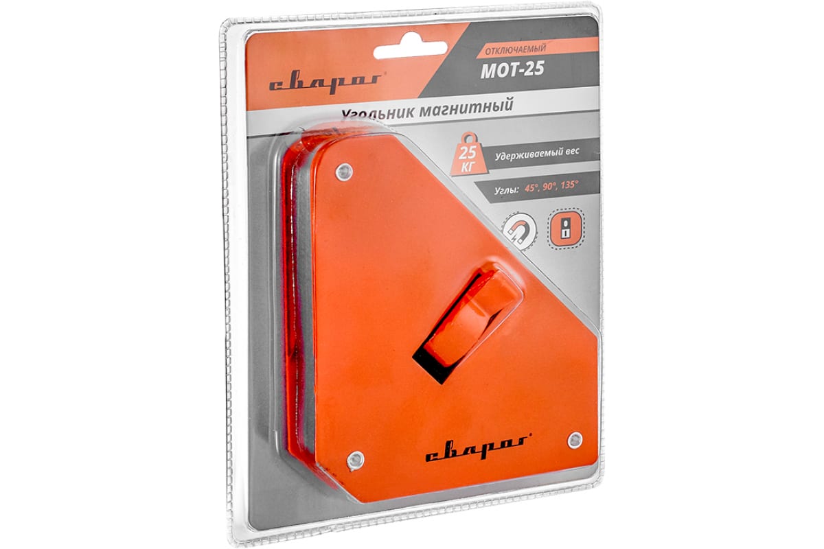 Угольник магнитный МОТ–25 QJ6006 Сварог 95913 предназначен для фиксации металлических деталей при сварке, пайке, сборке конструкций. Применяется для работы с круглыми трубами, прямоугольными трубами, полосами, уголками, профилями, листовым, сплошным и другими видами металла. Угольник быстро и надёжно соединяет детали, сокращает время работы, облегчает монтаж и заменяет громоздкие зажимы и струбцины.