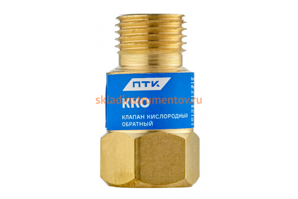 Клапан обратный ККО кислород ПТК 00000025909 предназначен для предотвращения противотока газа в газовых рукавах. Клапан устанавливается на резак или горелку накидной гайкой, резьба М16х1.5.