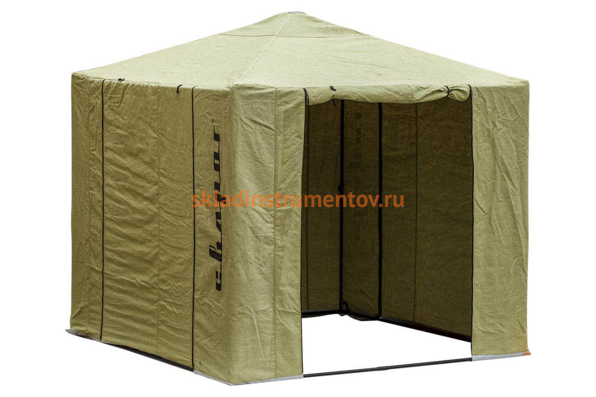 Палатка сварщика Сварог 94402 предназначена для проведения сварочных работ в тяжелых погодных условиях. Основой палатки служит усиленный металлический каркас из трубы диаметром 25 мм. Верхняя и нижняя часть каркаса отличаются цветом, что значительно упрощает сборку. Тент выполнен из плотного брезента с огнеупорной и влагоотталкивающей пропиткой. Ткань соответствует ГОСТам: 15530-93, 30386-95, 50729-95. Палатка имеет откидные проходы на молниях с 4-х сторон и прорезиненную ткань по нижнему периметру. Все угловые элементы тента дополнительно укреплены плотной износостойкой тканью. Размер – 2.5х2.5 м.