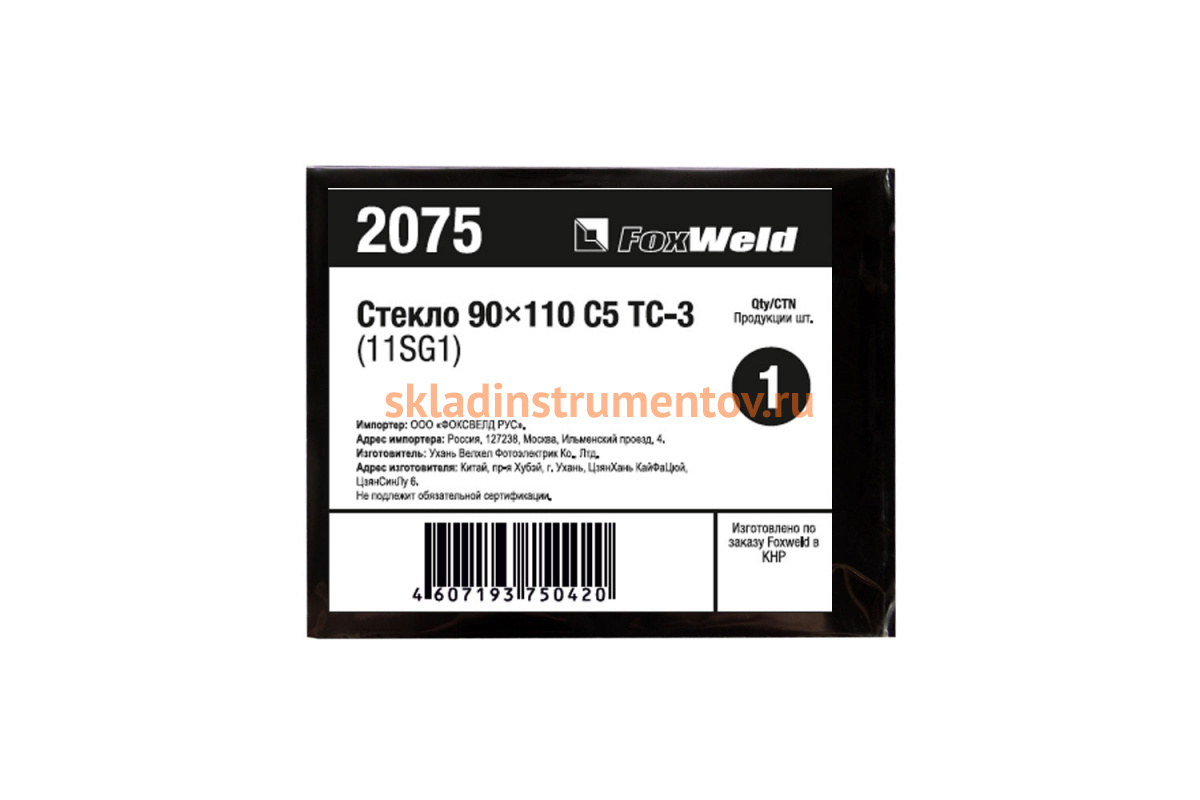 Стекло С5 ТС-3 11SG1 FOXWELD 2075 предназначено для щитков и масок сварщика различного типа, подходящих по размеру.
