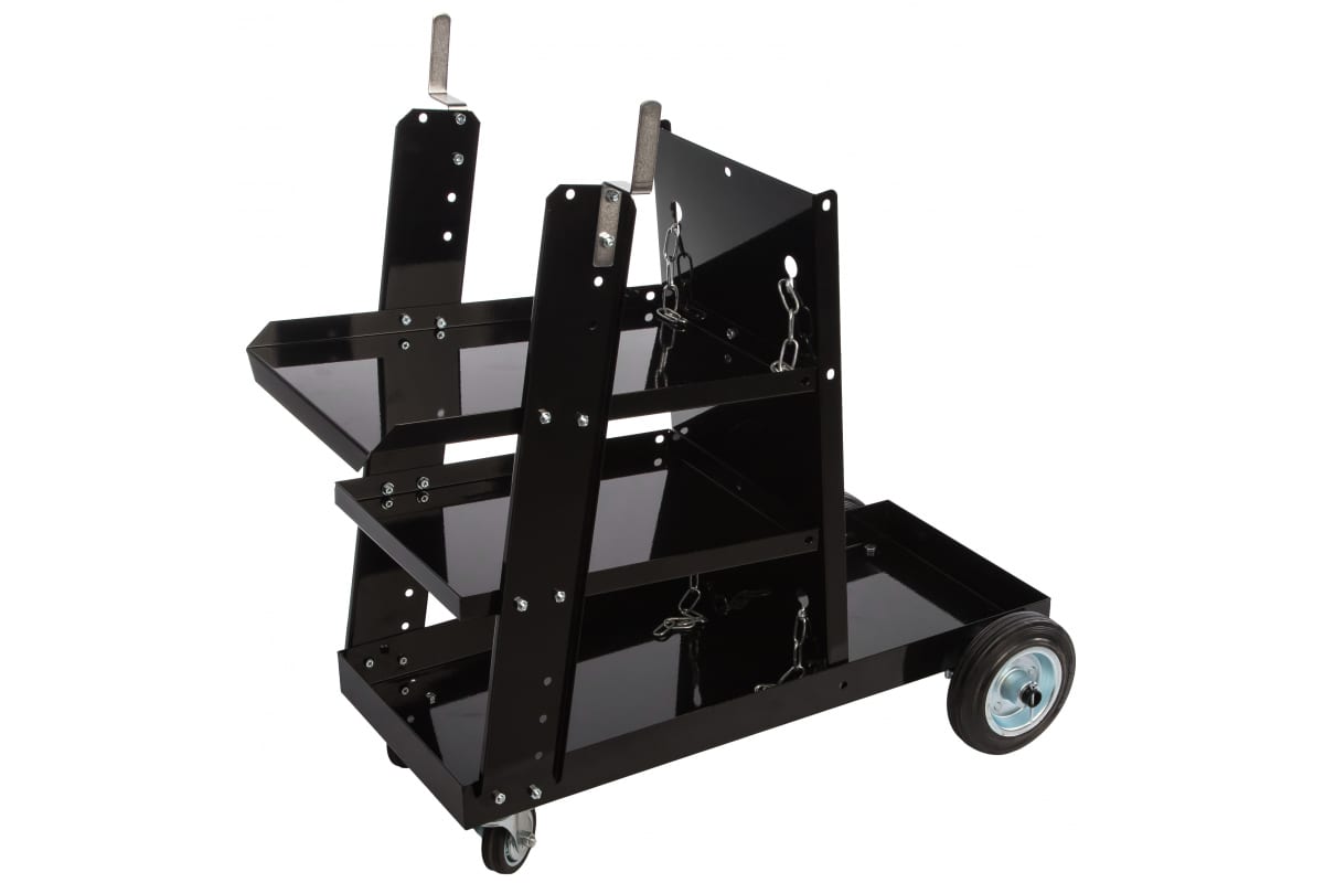 Тележка AURORA 14768 предназначена для облегчения перемещения аппаратов в комплекте с баллонами по цеху, гаражу и другим производственным помещениям. Высокое расположение аппарата на тележке позволяет настраивать инвертор, не наклоняясь к нему. Оснастка имеет передние поворотные колеса. На полках можно разместить все необходимые сварочные аксессуары.