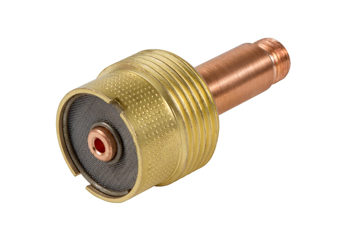 Держатель цанги большая газовая линза КЕДР 8007409 предназначен для горелок Sintig 17–18–26. Оснастка имеет особую конструкцию и позволяет равномерно распределять поток поступающего газа. Диаметр используемого вольфрамового электрода - 2.0 мм.