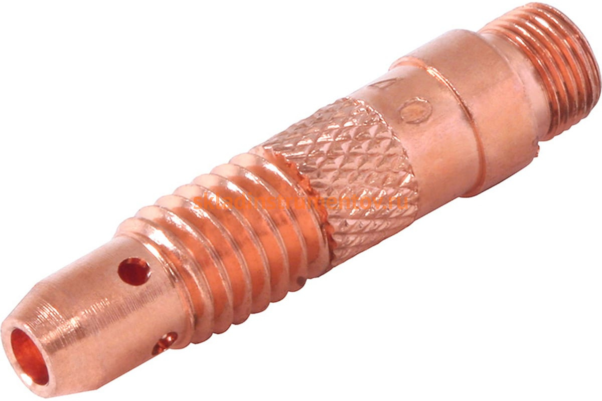 Держатель цанги КЕДР 7200006 предназначен для горелок Sintig 17–18–26. Применяется для установки и надежной фиксации цанги в сопле горелки. Отверстия на держателе предназначены для равномерного распределения защитного газа в сопле, тем самым держатель также выполняет функции диффузора во время TIG-сварки.