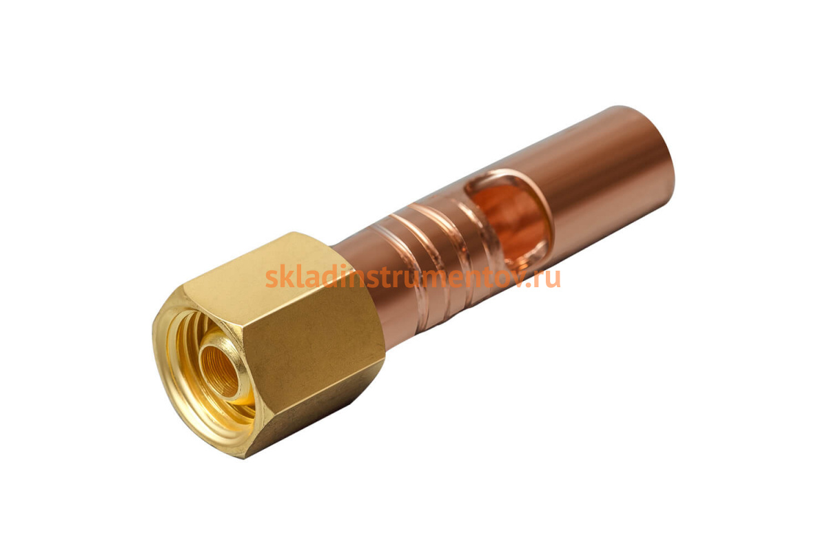 Штуцер DEN1009 ПТК 00000027296 предназначен для подключения шланга к горелке. Состоит из накидной гайки с внутренней резьбой М10x1 и штуцера елочка диаметром 9 мм.