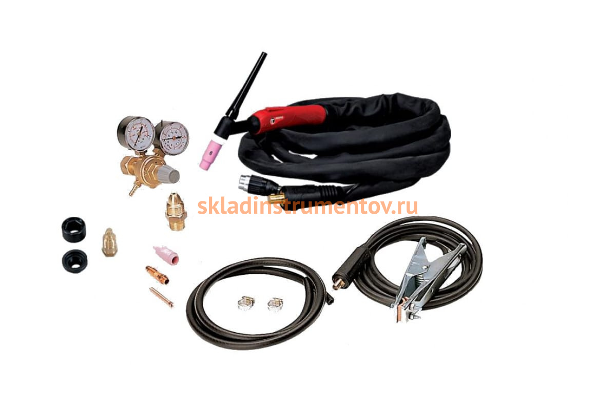 Набор для сварки TIG BlueWeld 802416 для сварочных аппаратов Prestige TIG 172; 180; 232; Mix 180 TIG-MIG-MMA предназначен для ручной сварки вольфрамовым электродом в среде инертного газа. В набор входит все необходимое для проведения сварочных работ: