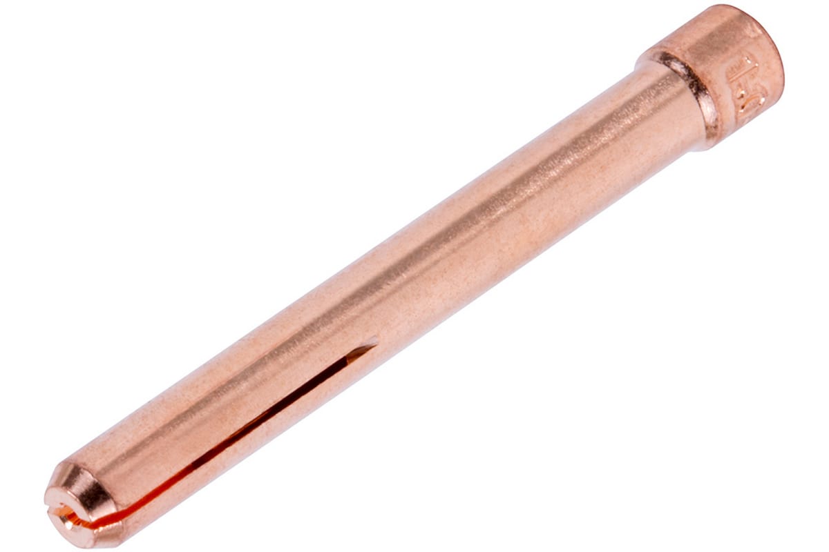 Цанга зажимная КЕДР 8004449 предназначена для горелок Sintig 17–18–26. Применяется для надежной фиксации вольфрамового электрода в сопле сварочной горелки во время проведения TIG-сварки. Цанга имеет осевые прорези, которые разделяют зажимные кулачки. Зажим электрода происходит за счет осевого усилия, которое прилагается к внутренней части цанги самим электродом.