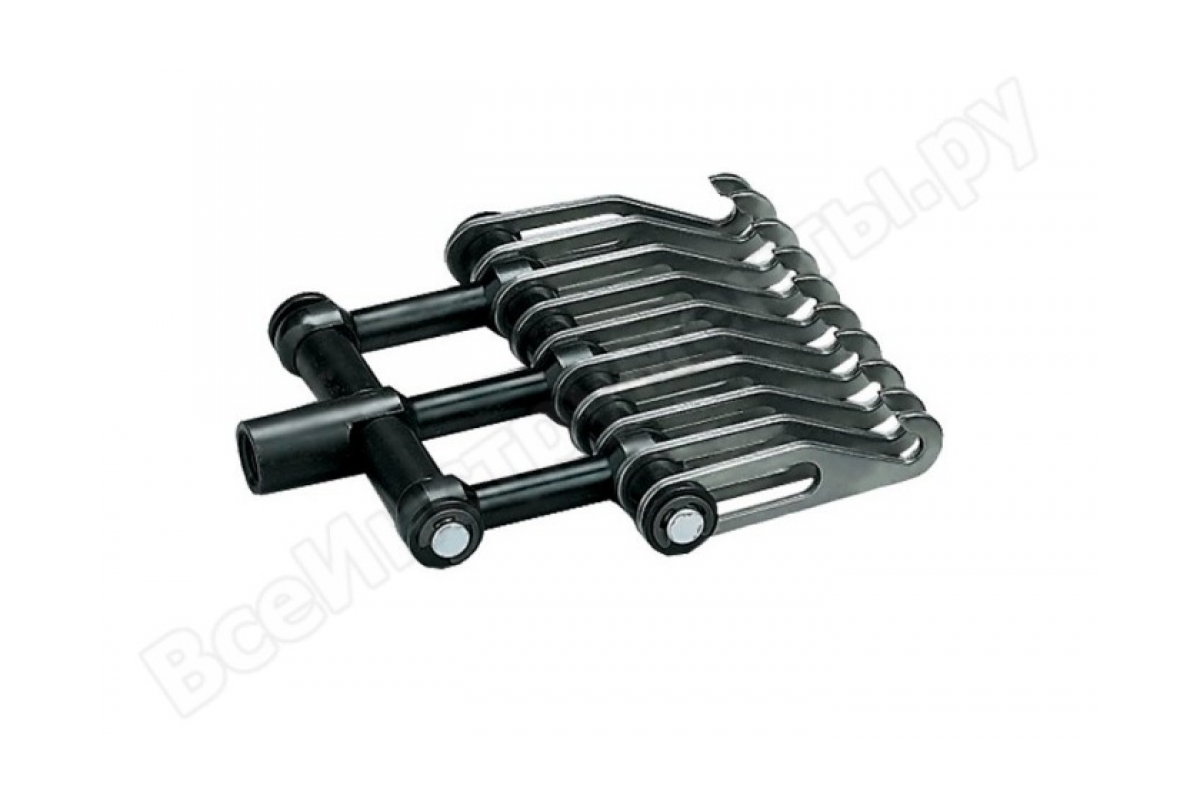 Блок с 10 крюками Blue Weld 742318 применяется при выпрямлении продольных вмятин разной глубины. Используется вместе с набором ALUPULL SYSTEM и с аппаратом точечной сварки. С одной стороны крепится к обратному молотку, с другой зацепляется крюками за волнистую проволоку, приваренную вдоль вмятины.