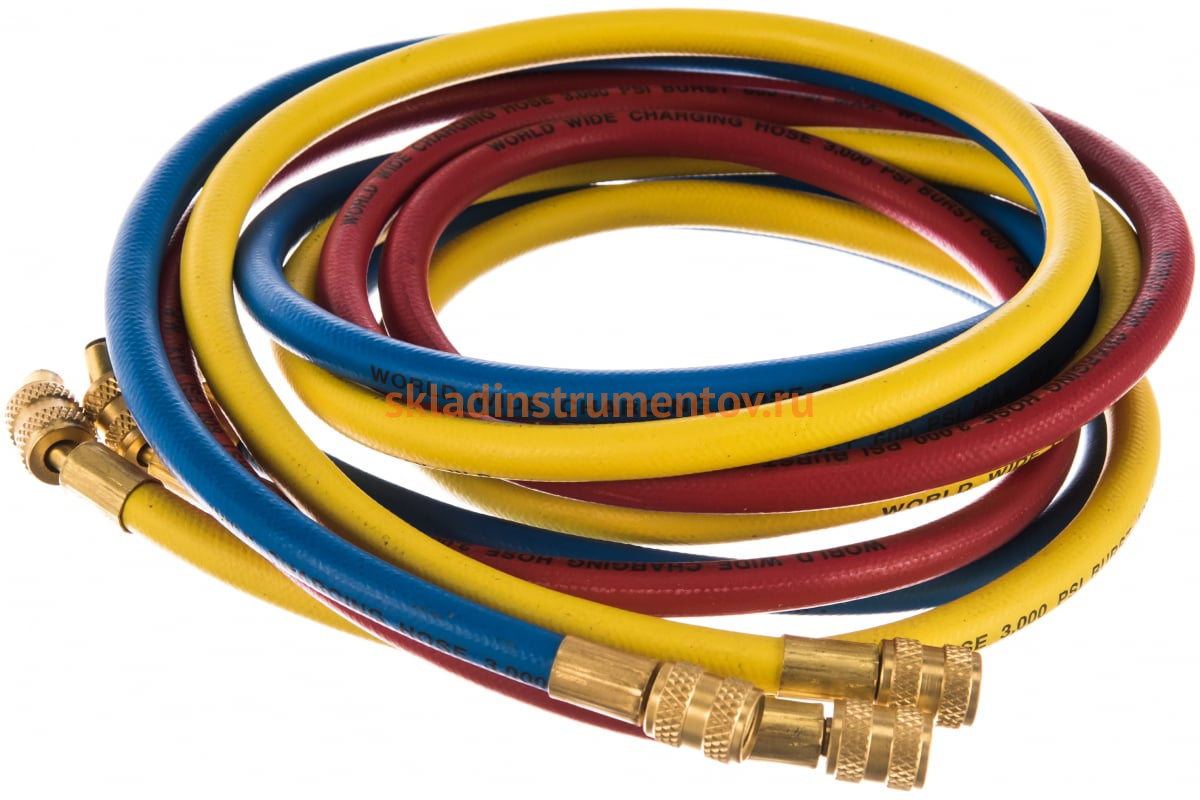 Шланг МАСТАК 105-61018 применяется для заправки автомобильных кондиционеров фреонами: R12, R22, R134A, R407C, R404A, R507. В комплекте три шланга с адаптерами. Присоединительные размеры - 1/4" SAE х 1/4" SAE. Длина – 1.8 м. Максимальное давление – 40 бар.